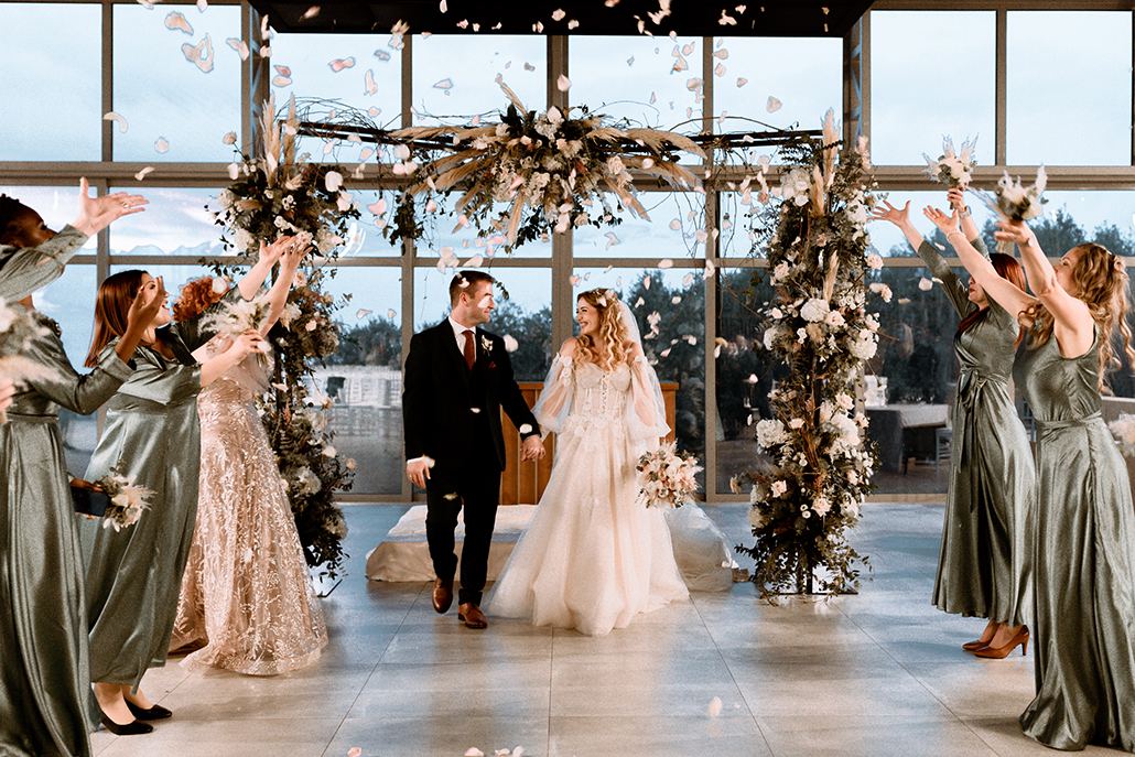 Ενας εντυπωσιακός ανθοστολισμός σε απαλούς τόνους αλλά και μια άκρως ρομαντική ατμόσφαιρα από αμέτρητα κεριά και fairy lights στη δεξίωση συνθέτουν τον παραμυθένιο γάμο της Σέβας και του Justin στη Θεσσαλονίκη και εσείς δεν πρέπει να τον χάσετε! Τα λόγια είναι περιττά για αυτό το σκηνικό που έστησε η Katia Samou Events σε απαλές soft αποχρώσεις που σε παρασέρνει από το πρώτο λεπτό. To Zelos Flowers με τη σειρά του συνθέτει μια αψίδα statement για την τελετή με πανέμορφες ορτανσίες, λυσίανθους και τριαντάφυλλα μα και ανάλαφρα pampas grass και η νύφη εξομολογείται πως αυτό ήταν και το αγαπημένο τους στοιχείο στη διακόσμηση. Ο ρομαντισμός ξεχειλίζει από την κάθε γωνιά και σε αυτό το παραμύθι πρωταγωνίστρια είναι μια άκρως ρομαντική νύφη με ένα ανάλαφρο σε άλφα γραμμή νυφικό φόρεμα από τον οίκο νυφικών Primalicia Bridal Designers…τα αποσπώμενα μανίκια, τα floral σχέδια είναι ένα όνειρο και το ίδιο ονειρεμένος είναι και ο γάμος τους από την αρχή μέχρι το τέλος! «Ι breath while looking at you» είναι η φωτεινή επιγραφή στο γαμήλιο πάρτι τους και εμείς έχουμε μαγευτεί από την αγάπη τους μα και τις υπέροχες επιλογές τους!
