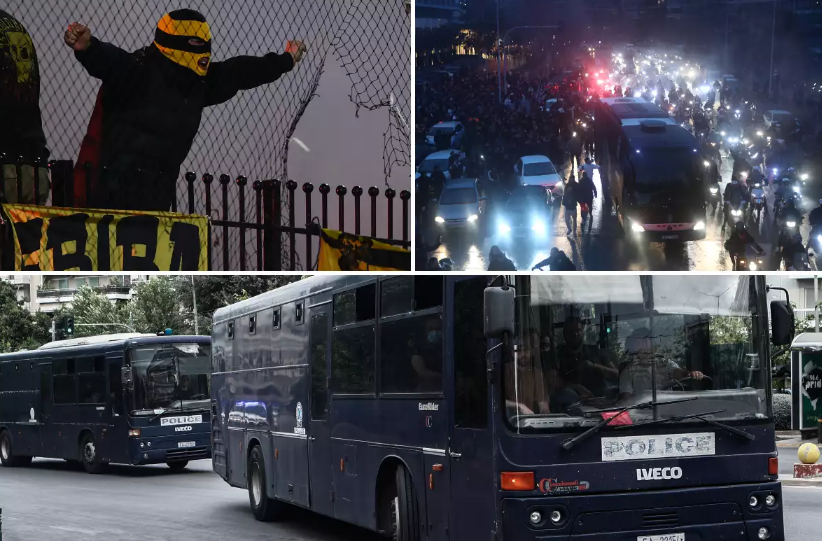 Δυνάμεις των ΜΑΤ και άλλων μονάδων έχουν αναπτυχθεί και όσο πλησιάζει η ώρα του αγώνα τόσο θα σφίγγει ο κλοιός.