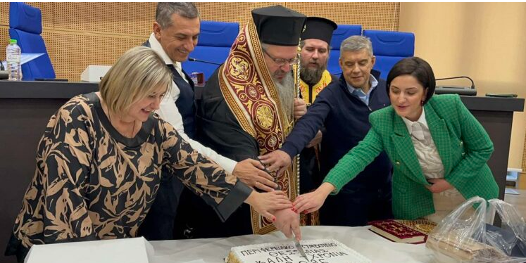 Σε εορταστικό κλίμα, με την κοπή της πρωτοχρονιάτικης πίτας, ξεκίνησε η σημερινή συνεδρίαση του Περιφερειακού Συμβουλίου Θεσσαλίας. Την βασιλόπιτα ευλόγησε ο μητροπολίτης Λαρίσης Ιερώνυμος ο οποίος ευχήθηκε κάθε επιτυχία και ενδυνάμωση στο έργο της Περιφέρειας και με αναλογισμό της ευθύνης απέναντι στους πολίτες, ώστε το 2025 να υπάρξουν θεαματικά αποτελέσματα για την περιοχή. Την πίτα έκοψαν ο περιφερειάρχης Δ. Κουρέτας και οι επικεφαλής των παρατάξεων της αντιπολίτευσης..