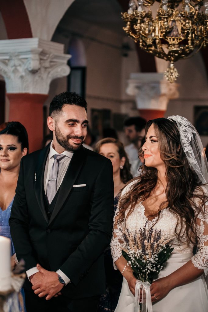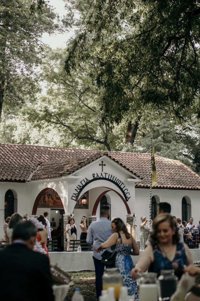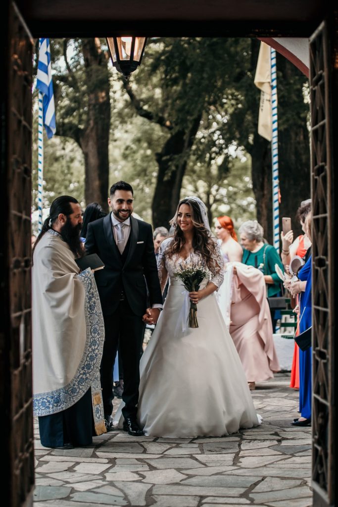 Στο γραφικό ξωκλήσι Παναγίας Βαλτινού, η Ειριάννα και ο Βασίλης, αντάλλαξαν όρκους παντοτινής αγάπης. Προτίμησαν έναν καλοκαιρινό γάμο με ρομαντικό στυλ και γήινες αποχρώσεις που ταίριαζε απόλυτα με τη φύση. Μας εντυπωσίασε πολύ το μοναδικό με δαντέλα της νύφης, με ανοιχτή πλάτη και εντυπωσιακή φούστα, το οποίο της ταίριαζε απόλυτα. Δε θα μπορούσαμε να παραβλέψουμε τον υπέροχο στολισμό, και τα λουλούδια του Αλέξανδρου Δημητρούλη. Κουμπάρα του ζευγαριού η Σοφία Μαντά.