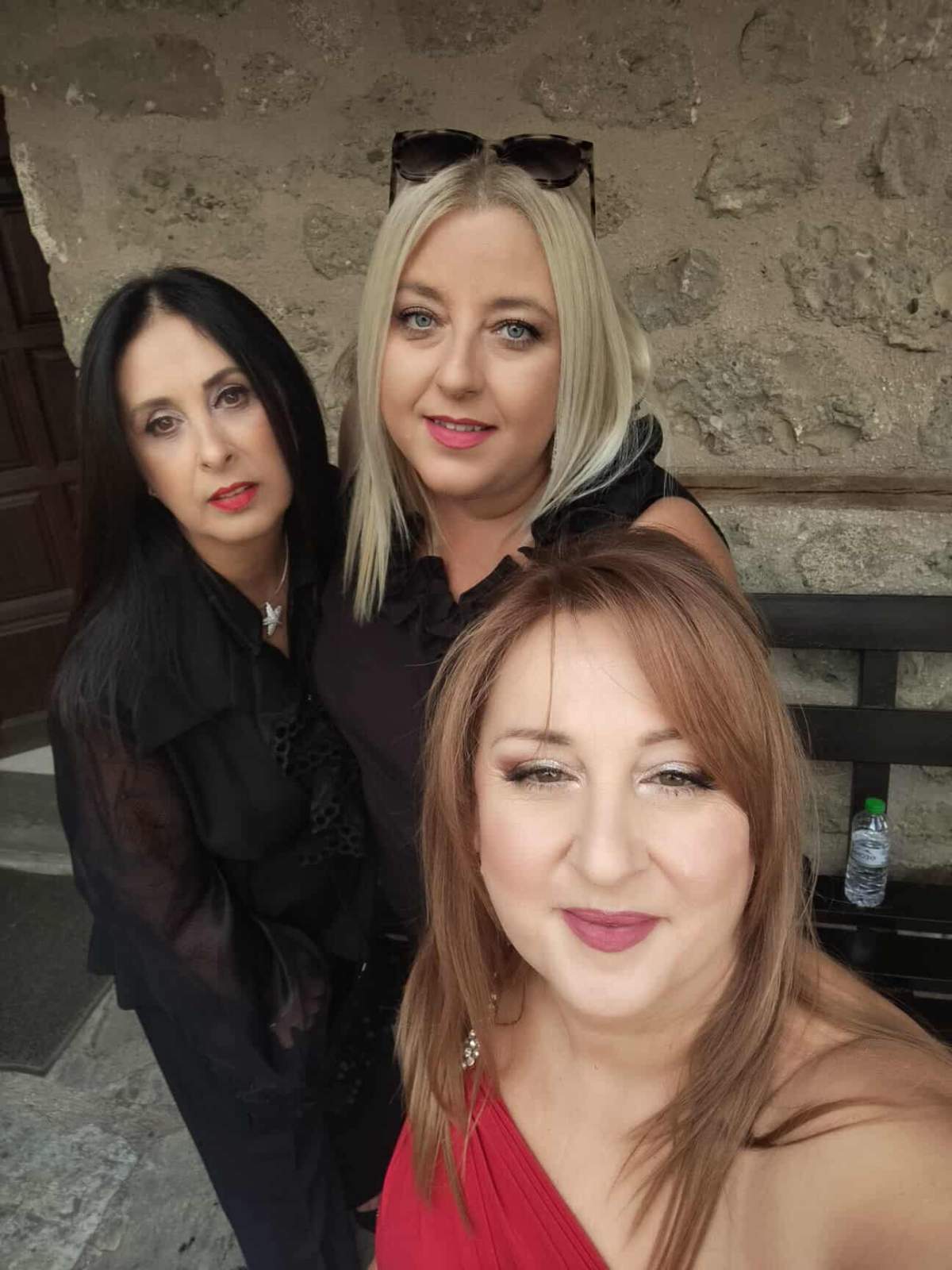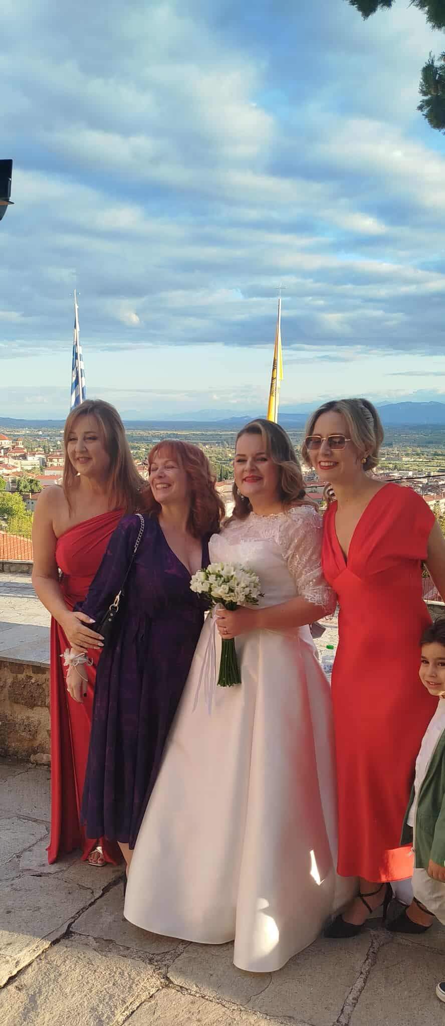 Η κουμπάρα Μαρία Μακρή, επιστήθια φίλη του Στάθη και της Δήμητρας, με εντυπωσιακή παρουσία, στάθηκε στο πλευρό του ζευγαριού με χαρά και συγκίνηση, ευλογώντας αυτή τη νέα αρχή στη ζωή τους.