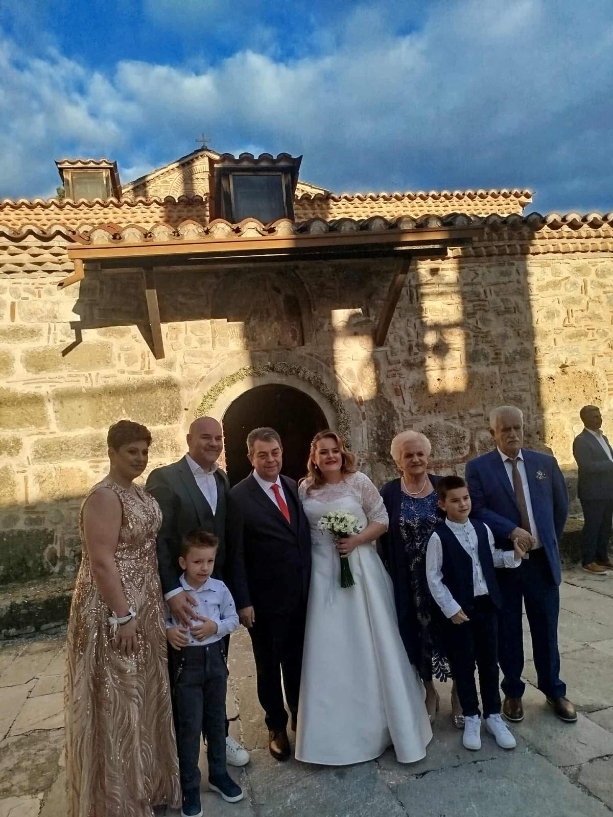 Το μυστήριο τελέστηκε στην πανέμορφη Ιερά Μονή Κοιμήσεως της Θεοτόκου στην Καλαμπάκα, παρουσία συγγενών και φίλων που ευχήθηκαν από καρδιάς στους νεόνυμφους «βίον ανθόσπαρτον».