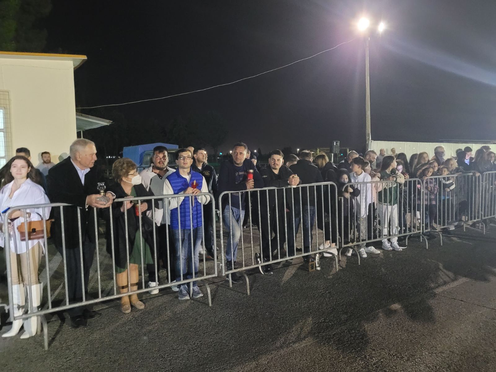 Πλήθος Λαρισαίων -μετά από δύο χρόνια πανδημίας- περίμεναν για ώρα υπομονετικά για να υποδεχθούν κι αυτοί το Άγιο Φως το οποίο – οδικώς πλέον – θα μεταφερθεί στην πλειοψηφία των Ιερών Ναών του νομού, για την Ανάσταση.