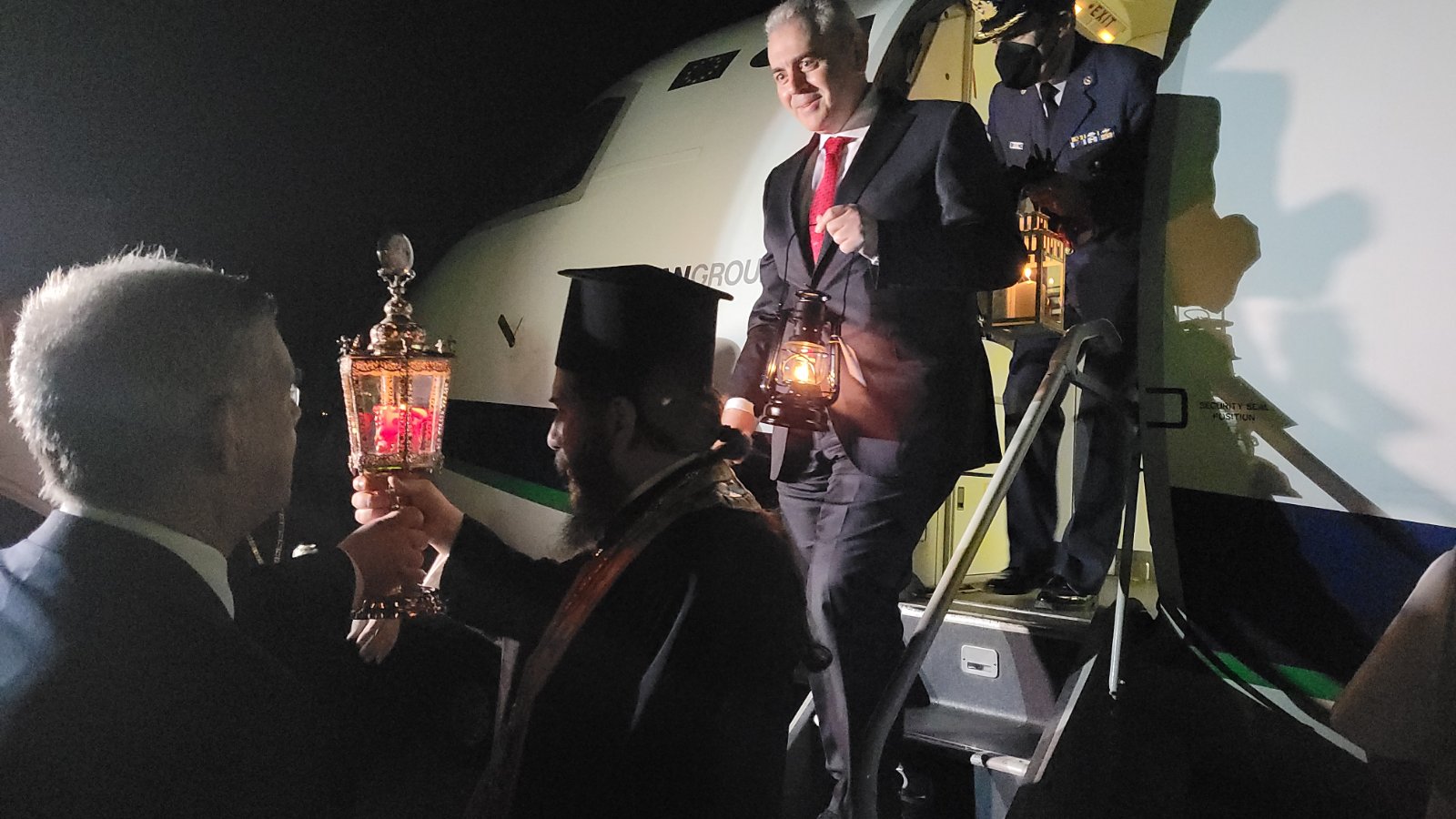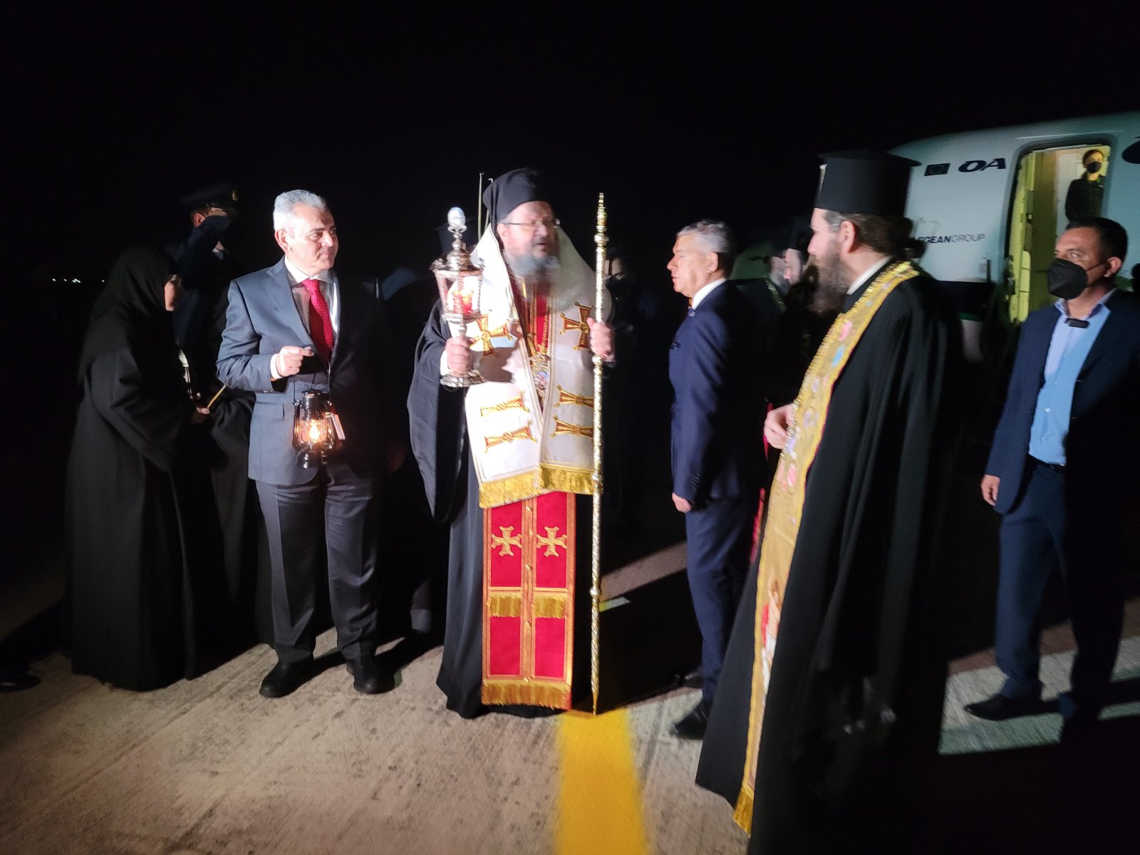 Στη Λάρισα έφτασε το Άγιο Φως λίγο μετά τις 10 το βράδυ του Μεγάλου Σαββάτου στο αεροδρόμιο της 110 Πτέρυγας Μάχης.