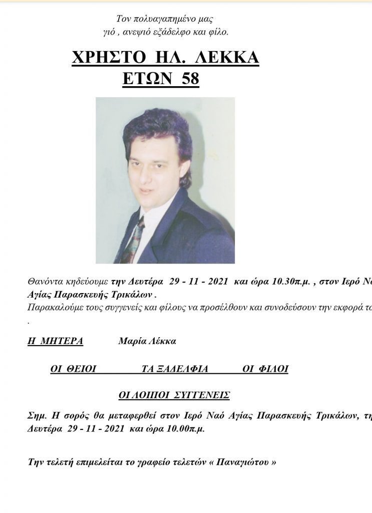 Τρίκαλα Έφυγε ο 57χρονος Χρήστος Λέκκας Αλεξάνδρα Τάμπου28/11/2021 Less than a minute Facebook X Διαβάστε επίσης... Η Κομπανία Βέρδη αναμένεται να «ανάψει» το γλέντι στον Παλαιόπυργο την Κυριακή 21/12 01/12/2025 Με 62 συλλόγους η Ελλάδα χορεύει στις “Γιορτές Παράδοσης 2025-26“ του Μύλου των Ξωτικών 01/12/2025 Αλεξάνδρα Τάμπου28/11/2021 Less than a minute Facebook X Share Facebook X Pinterest WhatsApp Viber