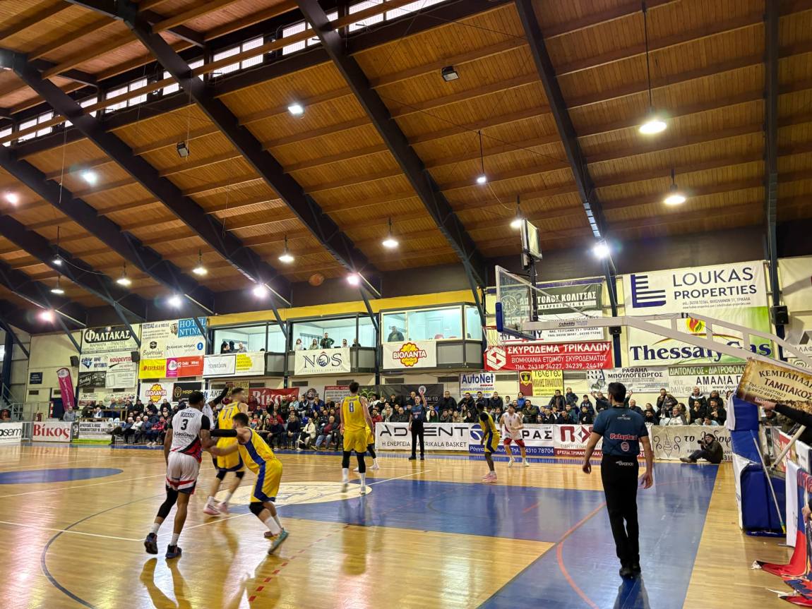 Μέσα στο παρκέ, οι γηπεδούχοι μπήκαν νωθρά και βρέθηκαν από νωρίς να κυνηγούν στο σκορ. Το Ψυχικό, καθοδηγούμενο από τον εντυπωσιακό Τζαμόντα Ρόσον Μπράιαντ, ο οποίος ολοκλήρωσε την αναμέτρηση με 26 πόντους, έβαλε δύσκολα στα Τρίκαλα. Μαζί του, οι έμπειροι Κουκάς (40 ετών) και Νίκου (44 ετών) έδωσαν ρυθμό στην ομάδα των φιλοξενούμενων.
