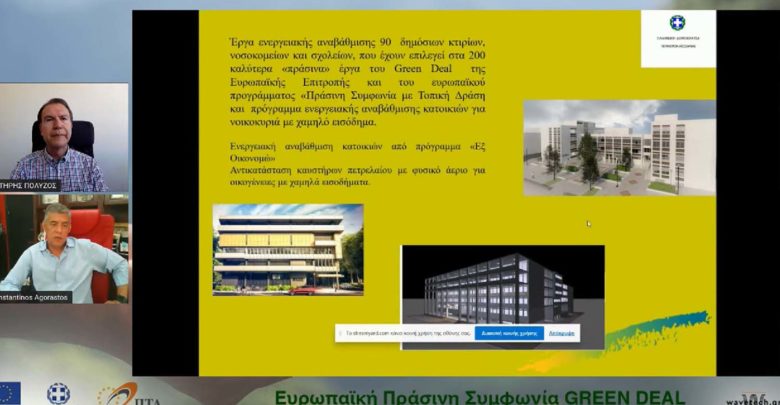 Τα έργα της Περιφέρειας Θεσσαλίας που εντάσσονται στο πλαίσιο της Ευρωπαϊκής Πράσινης Συμφωνίας Green Deal παρουσίασε ο περιφερειάρχης Θεσσαλίας Κώστας Αγοραστός μιλώντας σε διαδικτυακή εκδήλωση που διοργάνωσαν η Περιφέρεια Θεσσαλίας και το Κέντρο Ευρωπαϊκής Πληροφόρησης Περιφέρειας Θεσσαλίας Europe Direct.