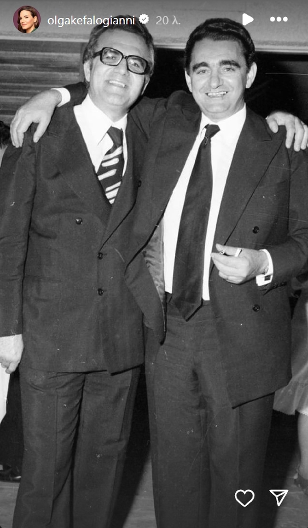 Ακόμα, η υπουργός Τουρισμού μοιράστηκε μια ασπρόμαυρη φωτογραφία του θείου της με τον πατέρα της Γιάννη Κεφαλογιάννη.
