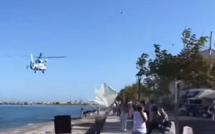 Κατά τη διάρκεια της χαμηλής πτήσης του ελικοφόρου κοντά στο παραλιακό μέτωπο, παρασύρθηκαν ομπρέλες και καθίσματα μπροστά από κατάστημα εστίασης.
