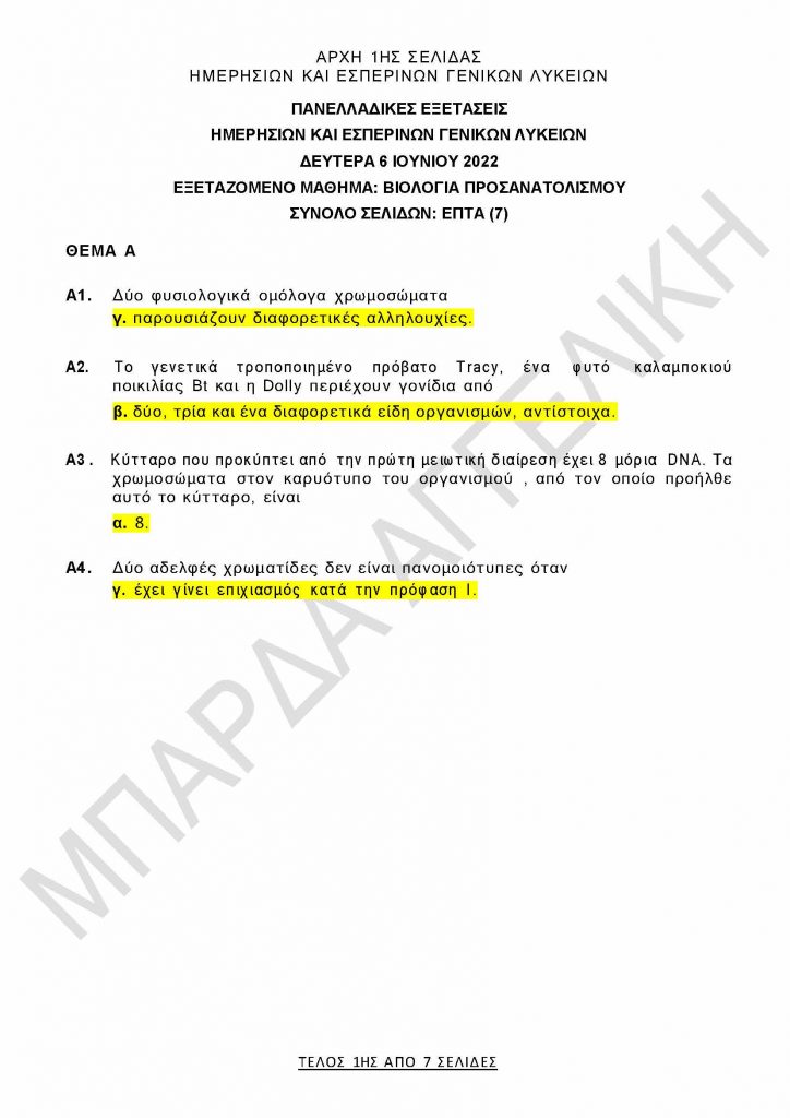Απαντήσεις για τα θέματα Βιολογίας από την Αγγελική Μπάρδα και το Φροντιστήριο Βιολογίας «Εξέλιξη»