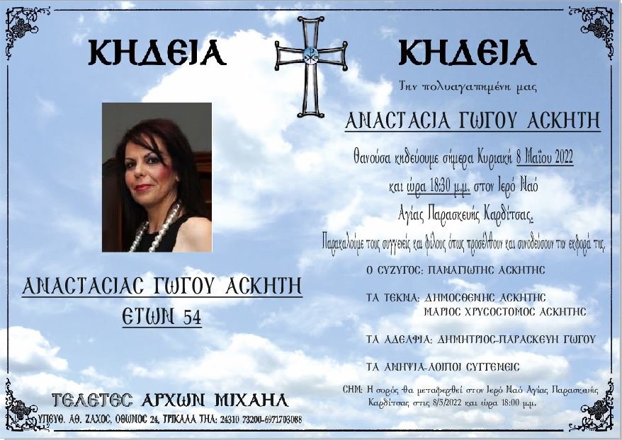 Τρίκαλα Απεβίωσε η 54χρονη Αναστασία Γώγου Ασκητή Αλεξάνδρα Τάμπου08/05/2022 Less than a minute Facebook X Διαβάστε επίσης... Η Κομπανία Βέρδη αναμένεται να «ανάψει» το γλέντι στον Παλαιόπυργο την Κυριακή 21/12 01/12/2025 Με 62 συλλόγους η Ελλάδα χορεύει στις “Γιορτές Παράδοσης 2025-26“ του Μύλου των Ξωτικών 01/12/2025 Αλεξάνδρα Τάμπου08/05/2022 Less than a minute Facebook X Share Facebook X Pinterest WhatsApp Viber