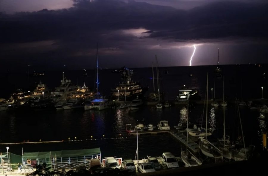 Κεραυνοί σχίζουν τα μαύρα σύννεφα, με τα φαινόμενα να συνθέτουν ένα πραγματικά απόκοσμο σκηνικό.
