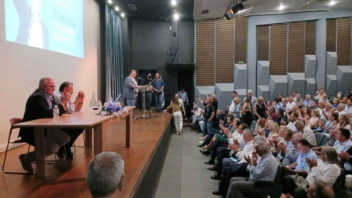 Πριν την ομιλία του Νίκου Παναγιωτόπουλου, σύντομους χαιρετισμούς απηύθυναν από το βήμα της εκδήλωσης όλοι οι υποψήφιοι του τοπικού ψηφοδελτίου της ΝΔ, όπως επίσης και οι κ.κ. Κουτσονάσιος και Δρακάκης, ευχαριστώντας τον πρώην Υπουργό και Βουλευτή Καβάλας για την παρουσία του στα Τρίκαλα.
