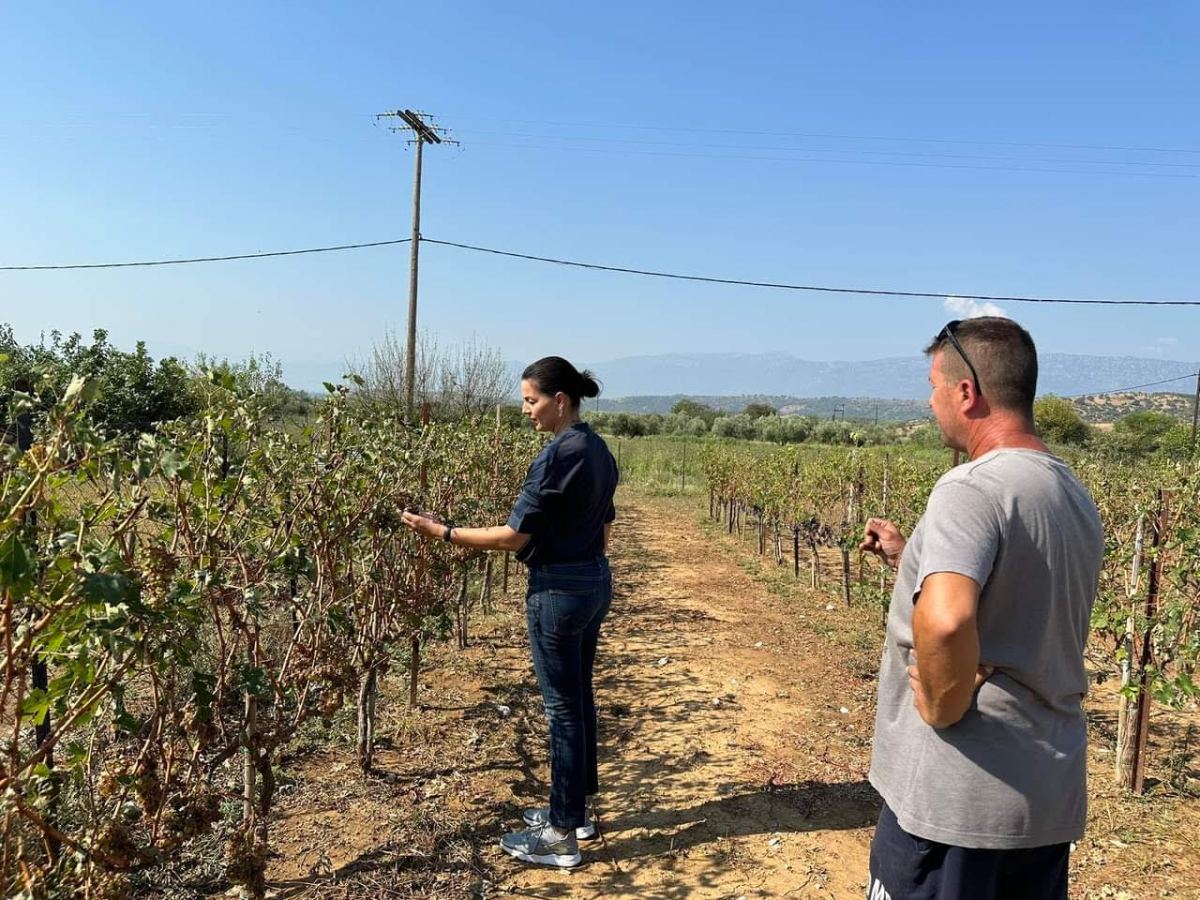 Περιόδευσε με γεωργούς και κτηνοτρόφους στις καλλιέργειες, στους στάβλους και στις αποθήκες που χτυπήθηκαν ανελέητα από το καταστροφικό μπουρίνι, κυρίως στο χωριό του Πλάτανου. Είδε με τα μάτια της καλλιέργειες από καπνά, βαμβάκι, αμπέλια, αμύγδαλα και πράσα να έχουν καταστραφεί ολοσχερώς και τις στέγες ποιμνιοστασίων και σπιτιών να έχουν ξηλωθεί, ενώ αρκετοί δρόμοι είναι ακόμη πλημμυρισμένοι και γεμάτοι λάσπες.