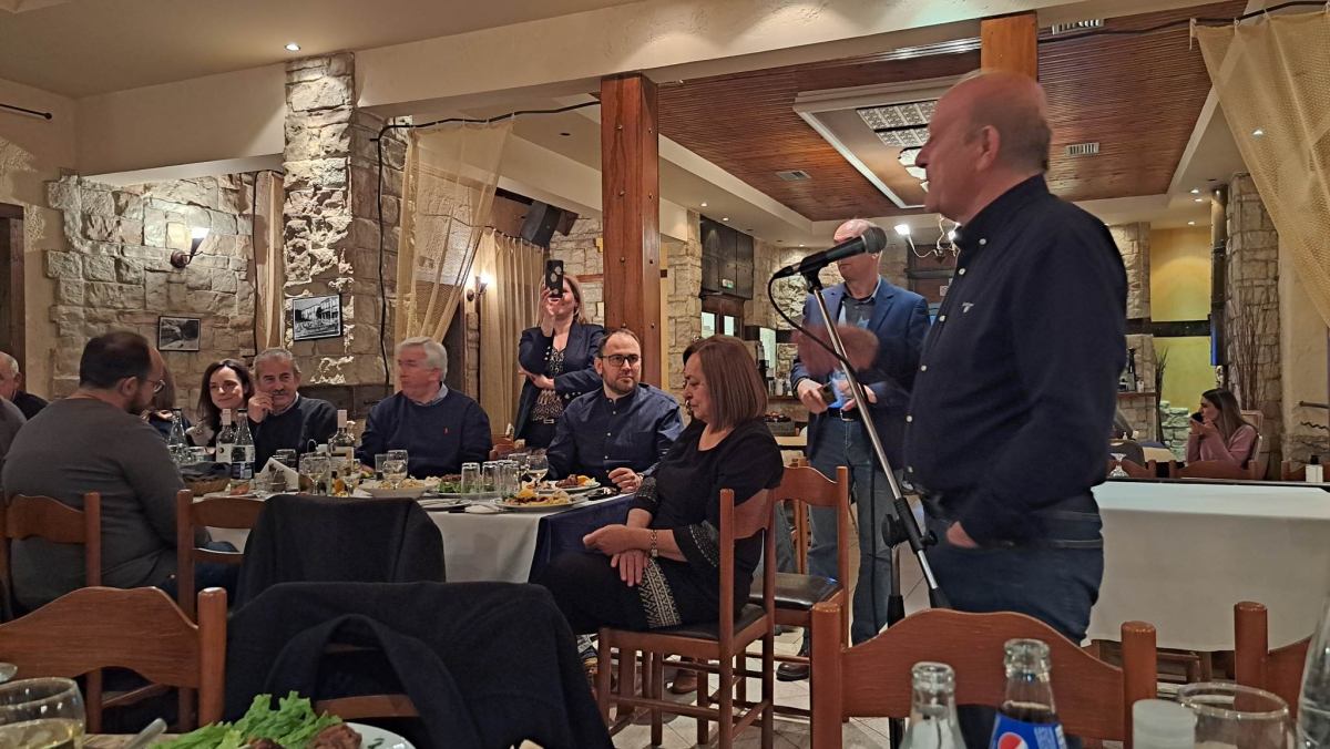 Στην σύντομη ομιλία του…αναφέρθηκε στην νέα εκλογική μάχη την οποία είναι έτοιμος να δώσει έχοντας στο πλευρό του την οικογένεια του όπως δήλωσε συγκινημένος. ”Δεν έχω ισχυρούς πολιτικούς φίλους, έχω φίλους καρδιάς και αυτή την οικογένεια που πάντα με στήριζε και μαζί θα δώσουμε τη μάχη και σε αυτές τις εκλογές. Σας ευχαριστώ για όλα όσα έχουμε ζήσει …και είμαι έτοιμος να σας δώσω απαντήσεις …εσείς έχετε ερωτήσεις έτοιμες …δήλωσε με χιούμορ”!
