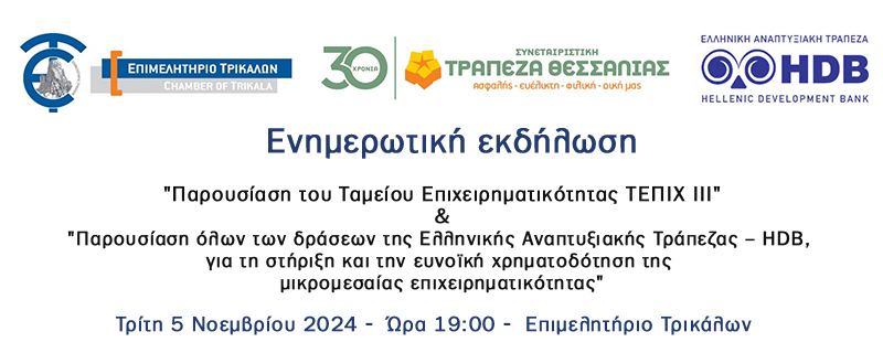 Το Επιμελητήριο Τρικάλων, η Συνεταιριστική Τράπεζα Θεσσαλίας και η Ελληνική Αναπτυξιακή Τράπεζα –