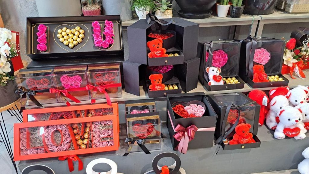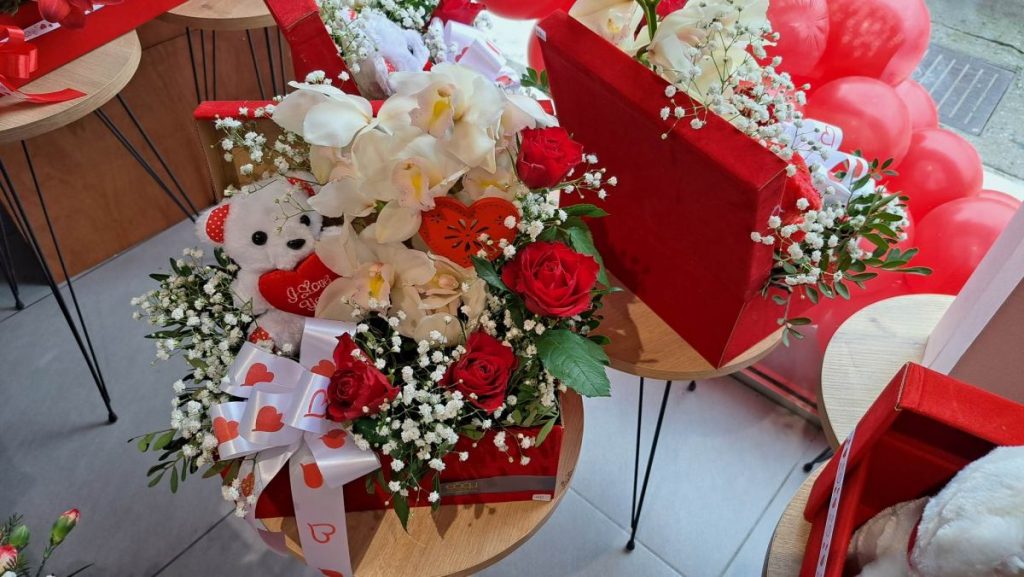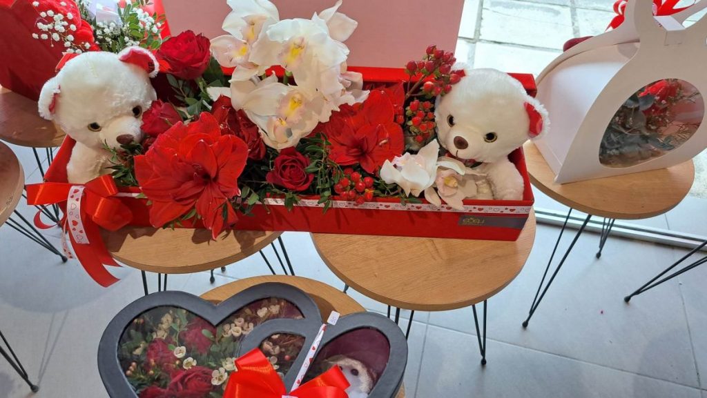 Valentine’s Day και το κόκκινο κυριαρχεί παντού! Ερωτευμένοι και μη μπορούν να πάρουν το δώρο τους και να εκφράζουν τον έρωτα τους με μια ανθοδέσμη, με ένα ερωτικό αρκουδάκι αλλά και πολλές συνθέσεις με άνθη και σοκολατάκια. Τηλ. 2431 076636