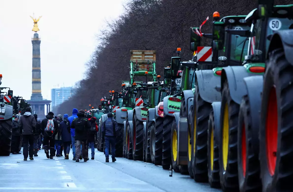 Σε αυτό, σύμφωνα με τους ίδιος υπολογισμούς, συμμετέχουν περισσότεροι από 10.000 άνθρωποι! Η Ένωση Αγροτών Γερμανίας βρίσκεται σε «εβδομάδα δράσης» από την προηγούμενη Δευτέρα, με συγκεντρώσεις και μπλόκα σε όλη τη χώρα, ενώ περίπου 700 τρακτέρ και αγροτικά φορτηγά είναι εδώ και μία εβδομάδα σταθμευμένα μπροστά στην Πύλη του Βραδεμβούργου.