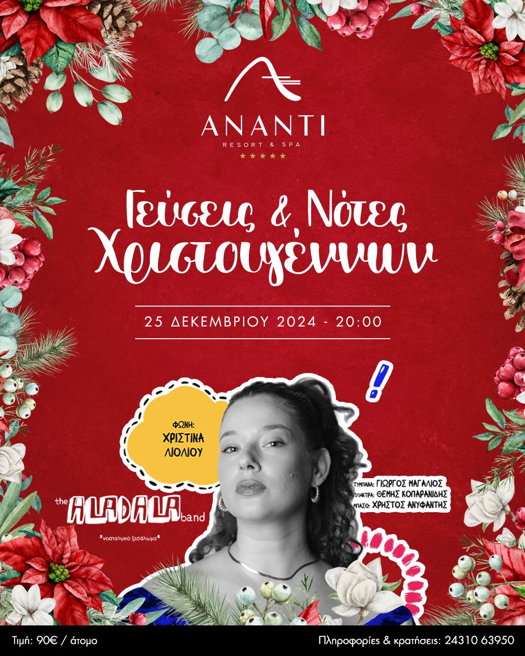 Φέτος τα Χριστούγεννα, ζήστε τη μαγεία της γιορτής σε μια αξέχαστη βραδιά γεμάτη γεύσεις, μουσική και εορταστική διάθεση!