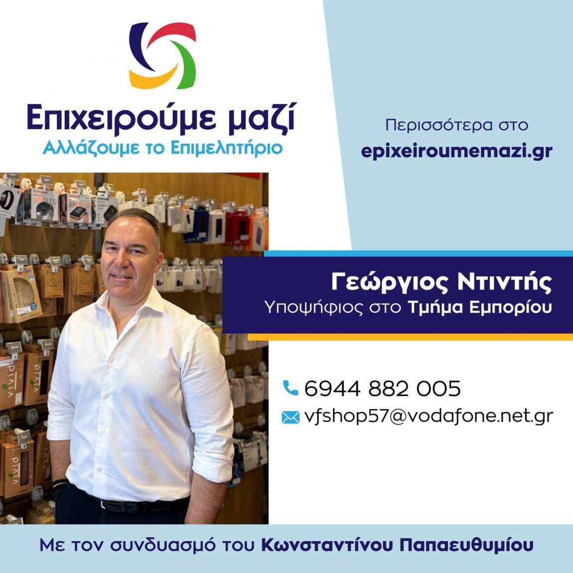 Υποψήφιος στο Τμήμα Εμπορίου με το Συνδυασμό του Κωνσταντίνου  Παπαευθυμίου «Επιχειρούμε Μαζί»
