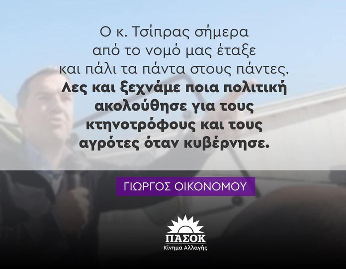 Γ. Οικονόμου : Δεν ξεχνάμε ποια πολιτική ακολούθησε ο κ.Τσίπρας για τους κτηνοτρόφους όταν κυβερνούσε!