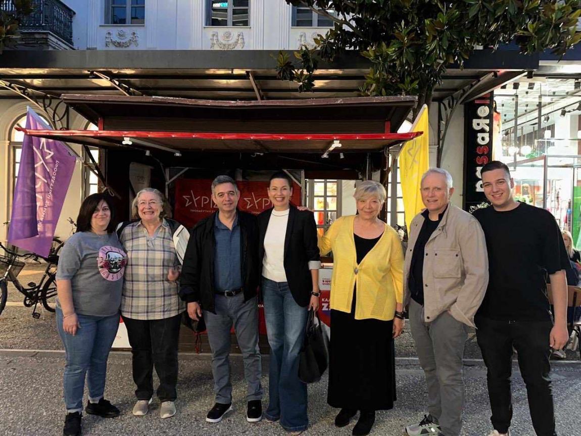 Στον αγώνα δίπλα στους Ευρωβουλευτές του Σύριζα και η Βουλευτής Μαρίνα Κοντοτόλη, που βρέθηκε χθες το βράδυ στο περίπτερο του κόμματος στην Ασκληπιού μαζί με τον σύντροφο της Γιάννη Ραγκούση. Η κ.Κοντοτόλη μοιράζεται το χρόνο της ανάμεσα στην Αθήνα και τα Τρίκαλα δίνοντας δυναμικό παρών σε όλες τις συγκεντρώσεις του κόμματος αλλά και δίπλα σε ευάλωτες κοινωνικές ομάδες που ζητούν την στήριξη του Σύριζα. Με κεντρικό σύνθημα ”Δικαιοσύνη παντού”, τα Τρικαλινά στελέχη αλλά και η ίδια δίνει τον δικό της αγώνα για τις Ευρωεκλογές της 9ης Ιουνίου.