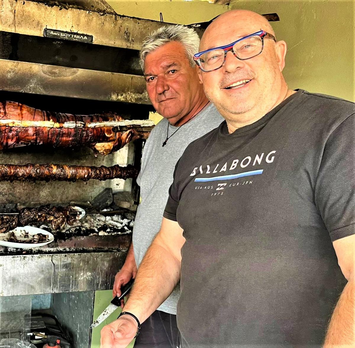 Δεινός ψήστης και Έμπειρος καλοφαγάς σε μεγάλη δράση, παραδοσιακών εδεσμάτων σούβλας