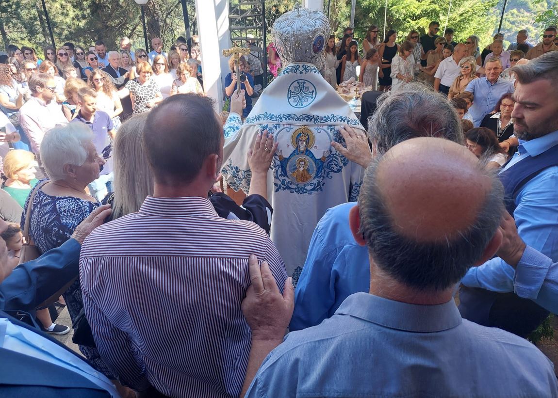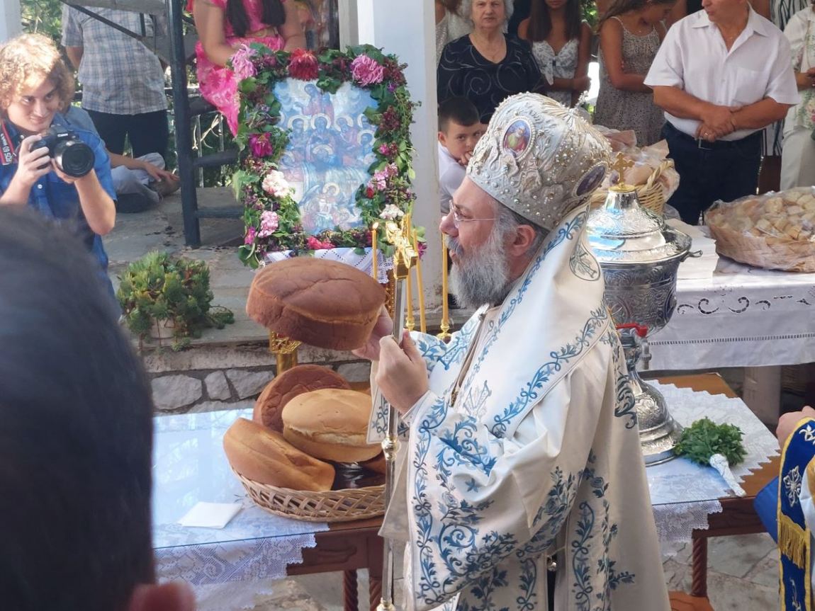 Με λαμπρότητα και πλήθος κόσμου γιορτάστηκε και συνεχίζετε να γιορτάζετε και φέτος το Πάσχα του καλοκαιριού στην όμορφη Μεσοχώρα! Στην Πανηγυρική Θεία Λειτουργία – Αρτοκλασία χοροστάτησε μετά της συνοδείας του Ο Σεβασμιώτατος Μητροπολίτης Τρίκκης, Γαρδικίου και Πύλης κ.κ. Χρυσόστομος στον Ιερό Ναό Κοιμήσεως της Θεοτόκου. Στην Λειτουργία επίσης παρευρέθηκαν η Αντιπεριφερειάρχης της ΠΕ Τρικάλων κ. Χρύσα Ντιντή, ο Υπεύθυνος Πολιτικής Προστασίας της Περιφέρειας Θεσσαλίας κ. Ηλίας Λεοντάρης, ο Πρόεδρος της Τοπικής Κοινότητας Μεσοχώρας κ. Αθανάσιος Σακκάς και πλήθος κόσμου. Ο Σεβασμιώτατος συγκινημένος θυμήθηκε τα πρώτα αρχιερατικά του χρόνια και αναφέρθηκε σ’ αυτά. Ζεστός και εγκάρδιος συνομίλησε με μικρούς και μεγάλους δίνοντας την ευλογία του και τις ευχές του! Όλοι οι παρευρισκόμενοι απόλαυσαν την ομορφιά και τη φιλοξενία της Μεσοχώρας!