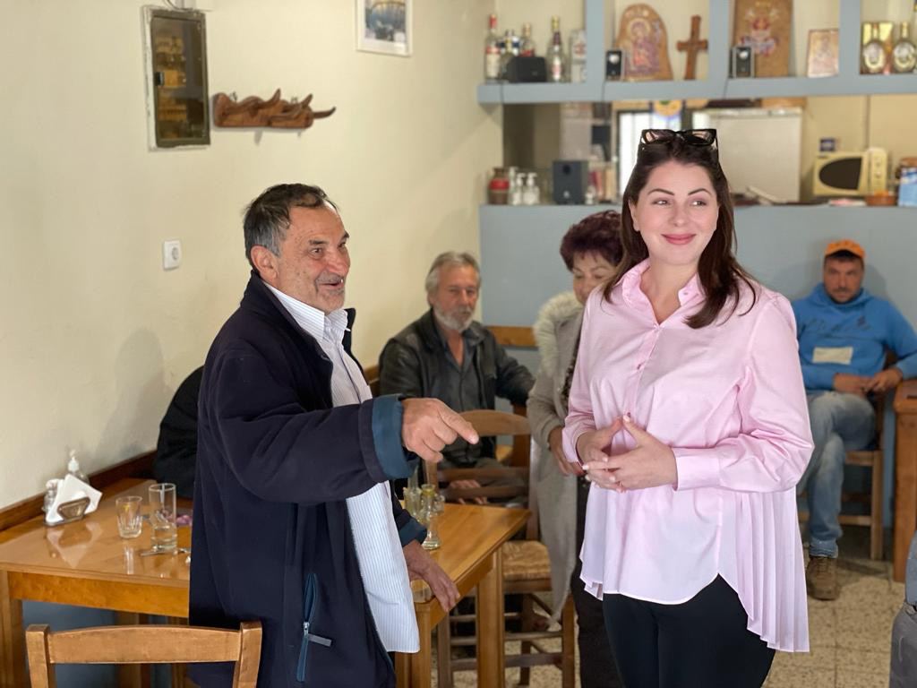 Σε κάθε χωριό που επισκέπτεται, η Υποψήφια Βουλευτής της Νέας Δημοκρατίας, Κατερίνα Παπακώστα, δεν χάνει την ευκαιρία να συζητήσει με τους κατοίκους σε πλατείες και καφενεία για την επόμενη δυναμική τετραετία της κυβέρνησης του Κυριάκου Μητσοτάκη.