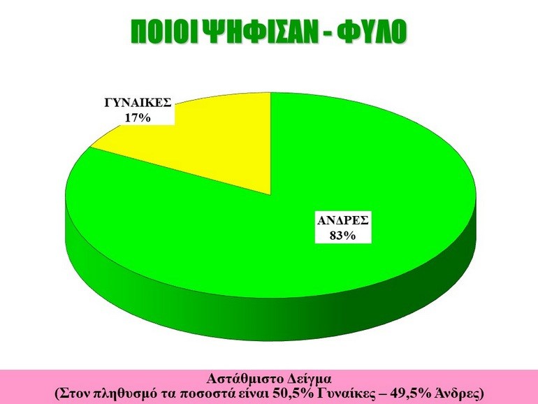 Οι πολίτες που συμμετείχαν στη δημοσκόπηση ήταν κατά 83% άνδρες και κατά 17% γυναίκες, όπως δείχνει ο πίνακας 1.