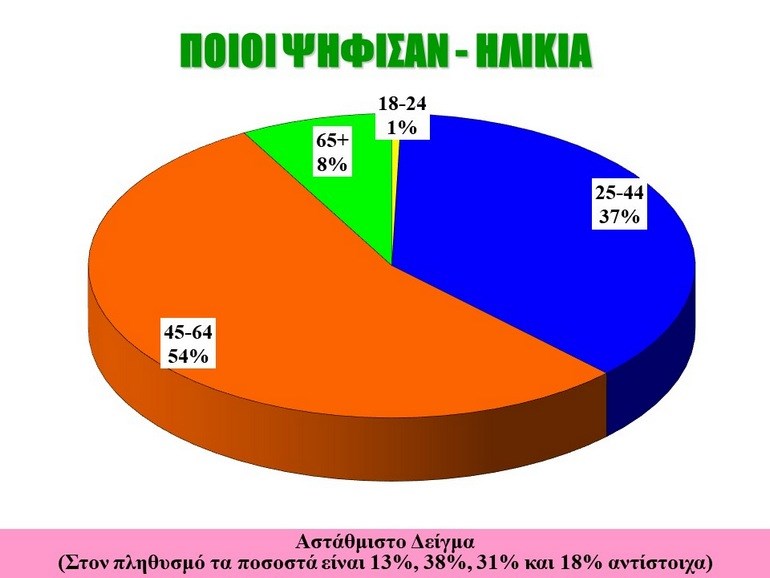 Από τους συμμετέχοντες το 1% ανήκει στην ηλικιακή κατηγορία 17- 24 ετών, το 37% στην κατηγορία 25-44, το 54% στην κατηγορία 45-64 ετών και το 8% στην κατηγορία άνω των 65 ετών (πίνακας 2).