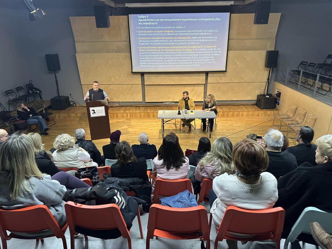 Ο Σύμβουλος Εκπαίδευσης κ. Βασίλειος Κωτούλας έκανε εισήγηση για το «Νομοθετικό πλαίσιο για την αντιμετώπιση περιστατικών βίας και εκφοβισμού στο σχολικό περιβάλλον».