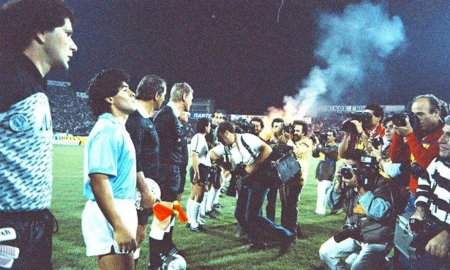 Χαρακτηριστικότερη, ίσως, φάση στο ματς ήταν η στιγμή, που οι Ιταλοί κέρδισαν κόρνερ μπροστά στη θύρα 4. Ο Μαραντόνα που ήταν ο εκτελεστής δέχτηκε «βροχή» αντικειμένων, με αποτέλεσμα να μη μπορεί να δοθεί συνέχεια στο παιχνίδι, στιγμή που σχολιάστηκε έντονα σε όλη την Ευρώπη…