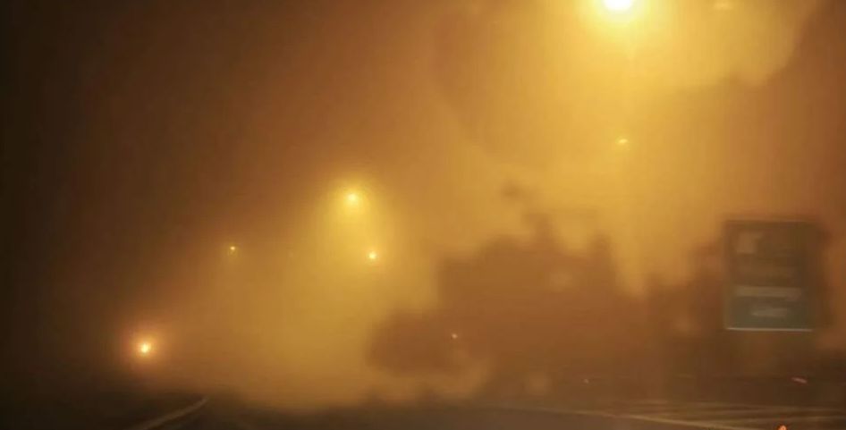 Τα κολωνάκια γίνονται σχεδόν αόρατα από την ομίχλη η οποία δεν είναι σπάνιο φαινόμενο για την περιοχή αυτή όπως και για άλλα τμήματα του αυτοκινητοδρόμου.
