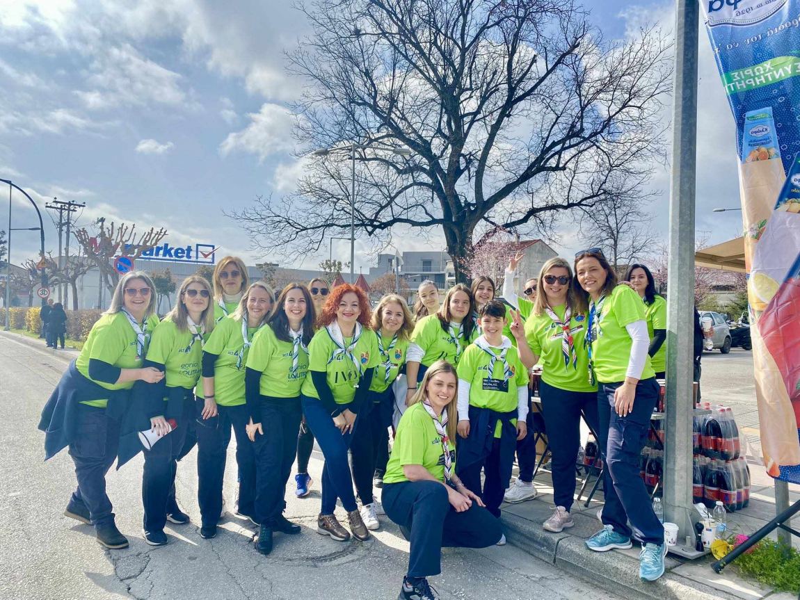 Βοηθώντας και εμψυχώνοντας μικρούς και μεγάλους που έλαβαν μέρος και έτρεξαν