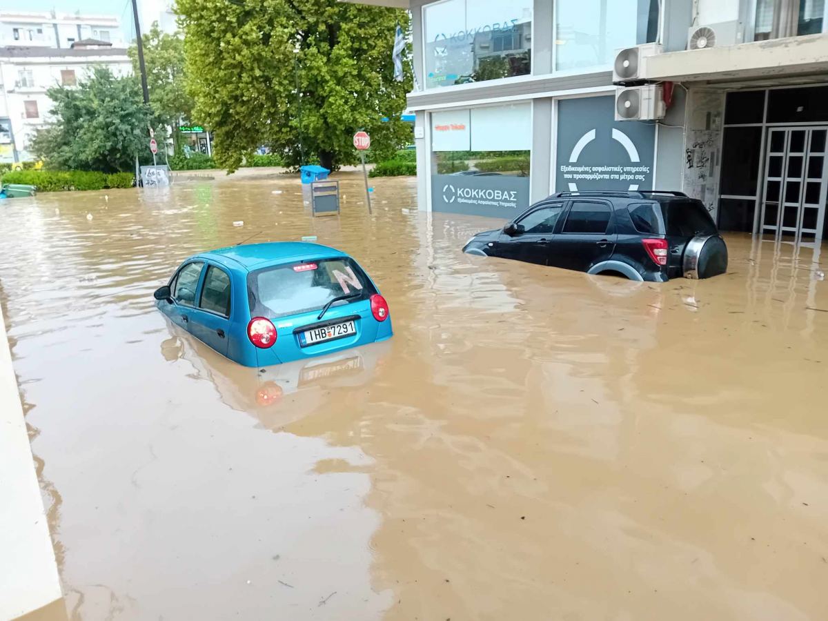 Εικόνες από την καταστροφική πλημμύρα στο κέντρο των Τρικάλων