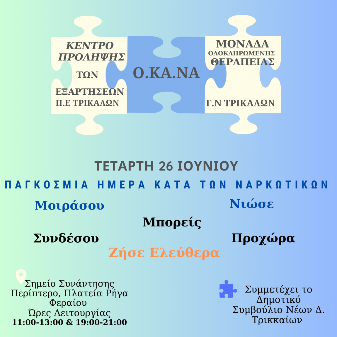 Στo πλαίσιo της Παγκόσμιας Ημέρας Κατά των Ναρκωτικών, Τετάρτη 26 Ιουνίου 2024, με