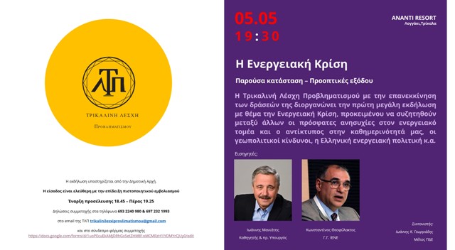 Εκδήλωση στα Τρίκαλα με θέμα: Η Ενεργειακή Κρίση – Παρούσα κατάσταση – Προοπτικές εξόδου