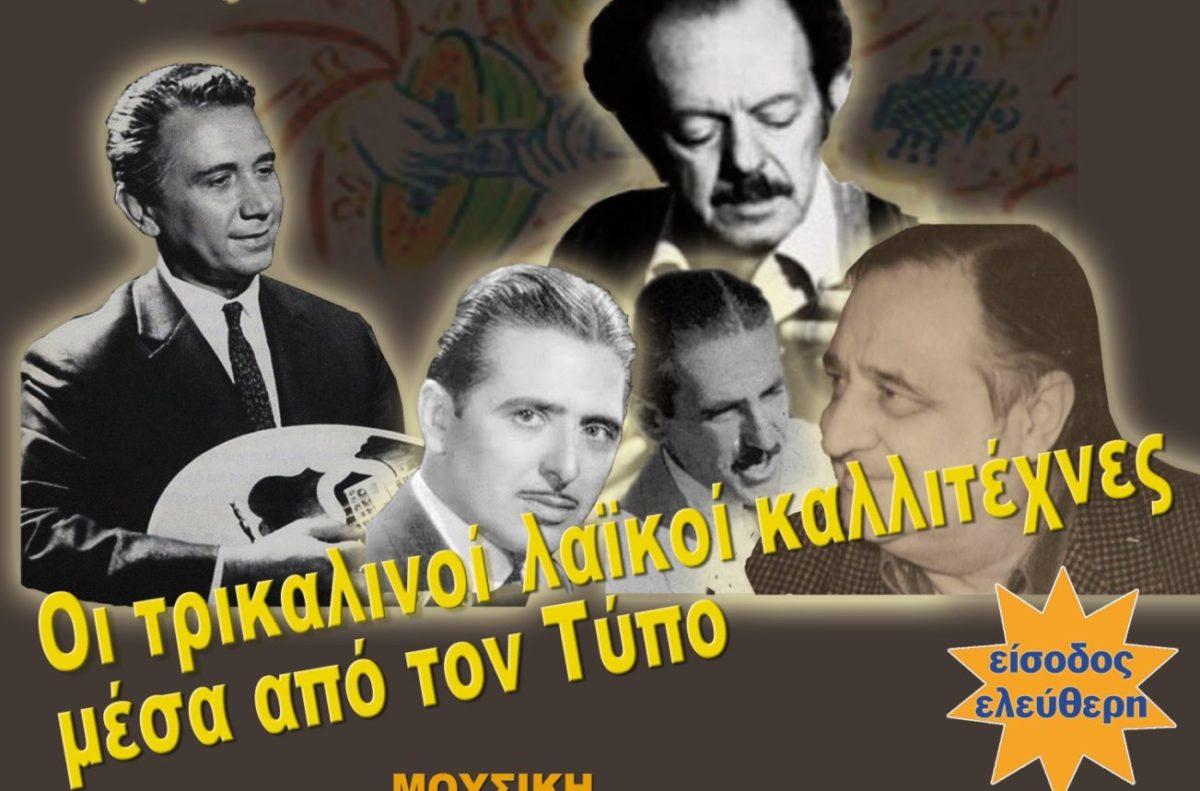 Το πρόγραμμα της εκδήλωσης περιλαμβάνει ομιλίες για τους μεγάλους Τρικαλινούς λαϊκούς δημιουργούς Τσιτσάνη, Καλδάρα, Βίρβο, Σαμολαδά και Κολοκοτρώνη, ενώ θα ακολουθήσει μουσική και τραγούδι.