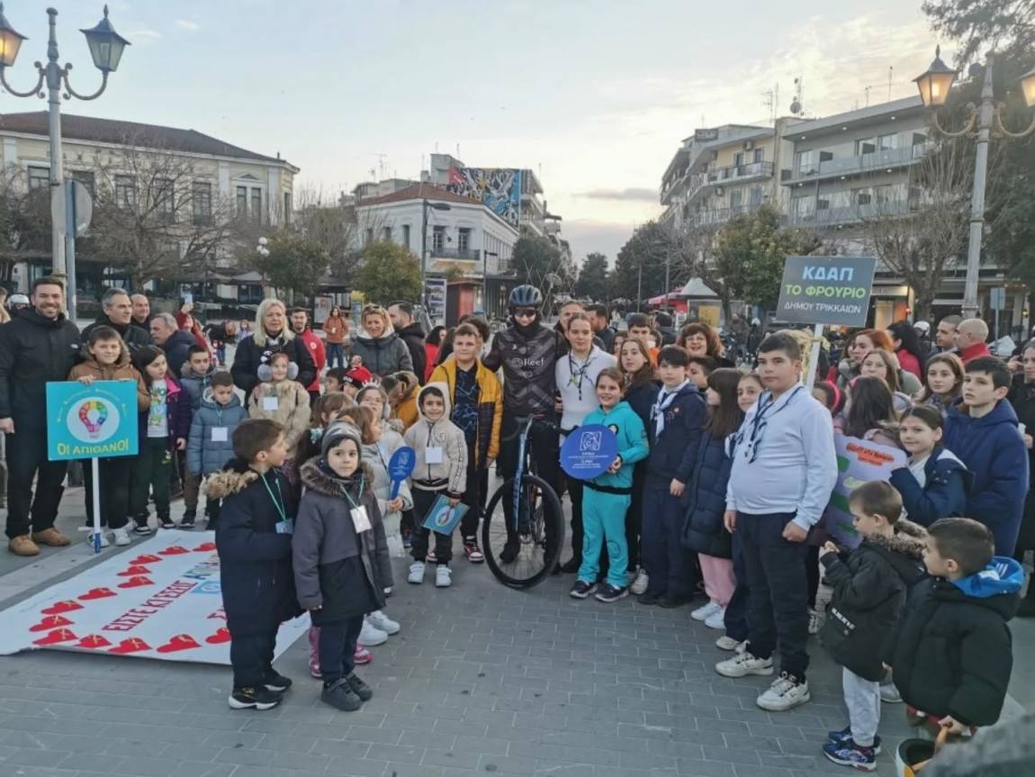 παιδιά από τα Τρίκαλα. Αφορμή η διαδρομή των 1.200 χιλιομέτρων του αγγελιαφόρου –