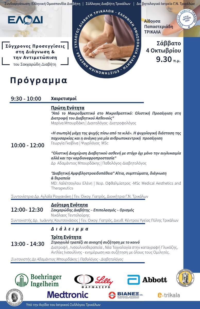 Η Ελληνική Ομοσπονδία Διαβήτη, ο Σύλλογος Διαβήτη Τρικάλων και το Διαβητολογικό