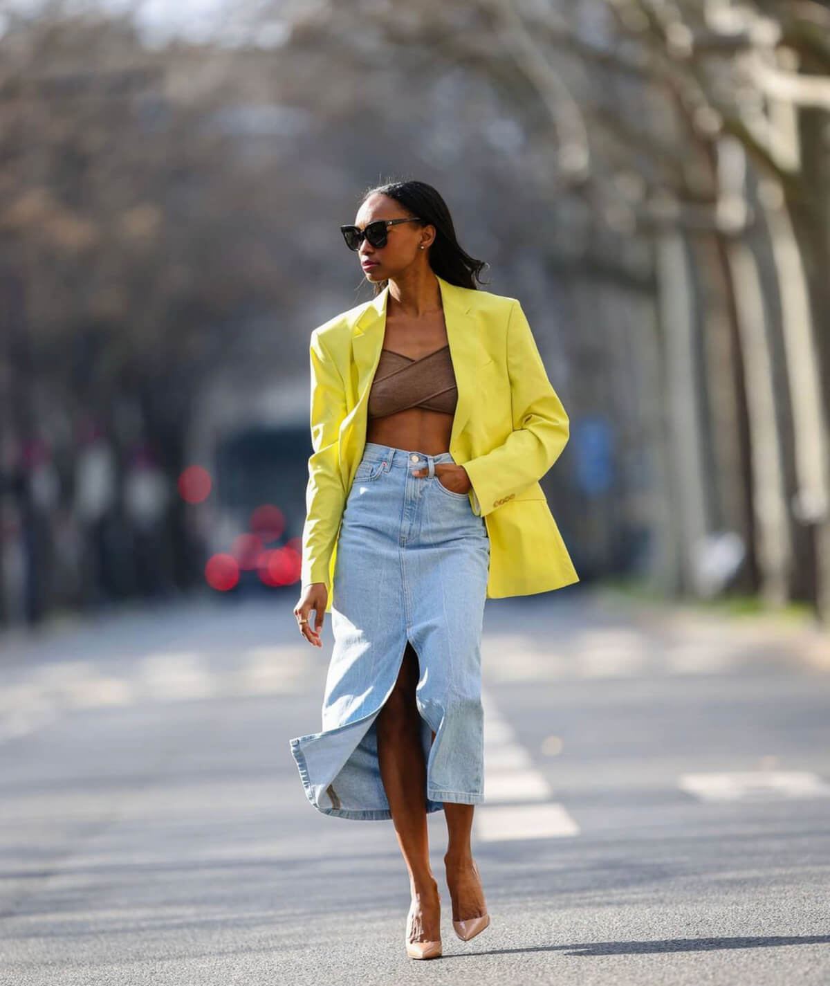 Μidi τζιν φούστα που συνδυάζεις με ένα κομψό body.