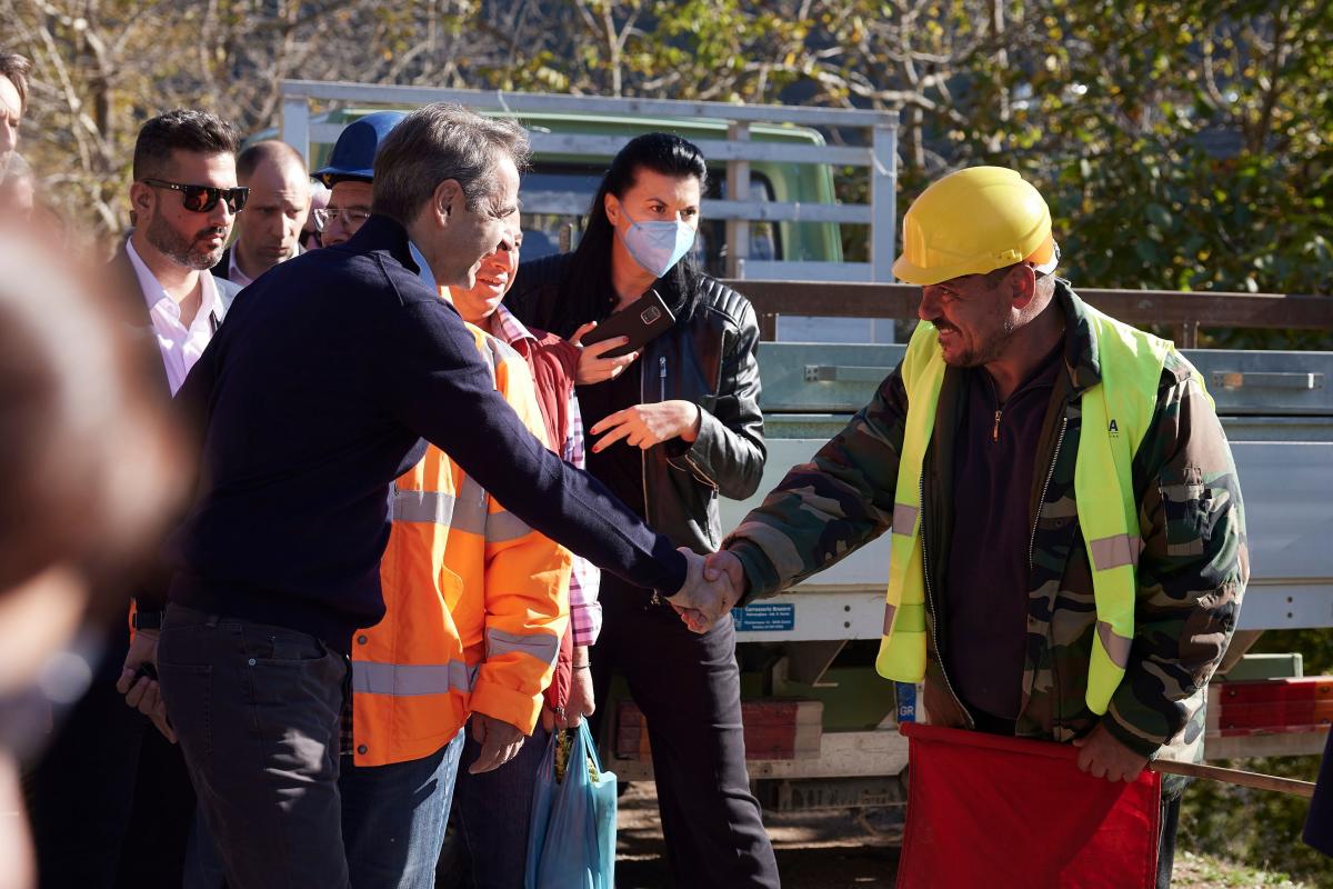 Ο Πρωθυπουργός Κυριάκος Μητσοτάκης, στο πλαίσιο της επίσκεψής του στην Περιφερειακή Ενότητα Καρδίτσας, επισκέφτηκε το πρωί εργοτάξιο όπου εκτελούνται εργασίες για την αποκατάσταση ζημιών που προκάλεσε στο οδικό δίκτυο ο μεσογειακός κυκλώνας «Ιανός».