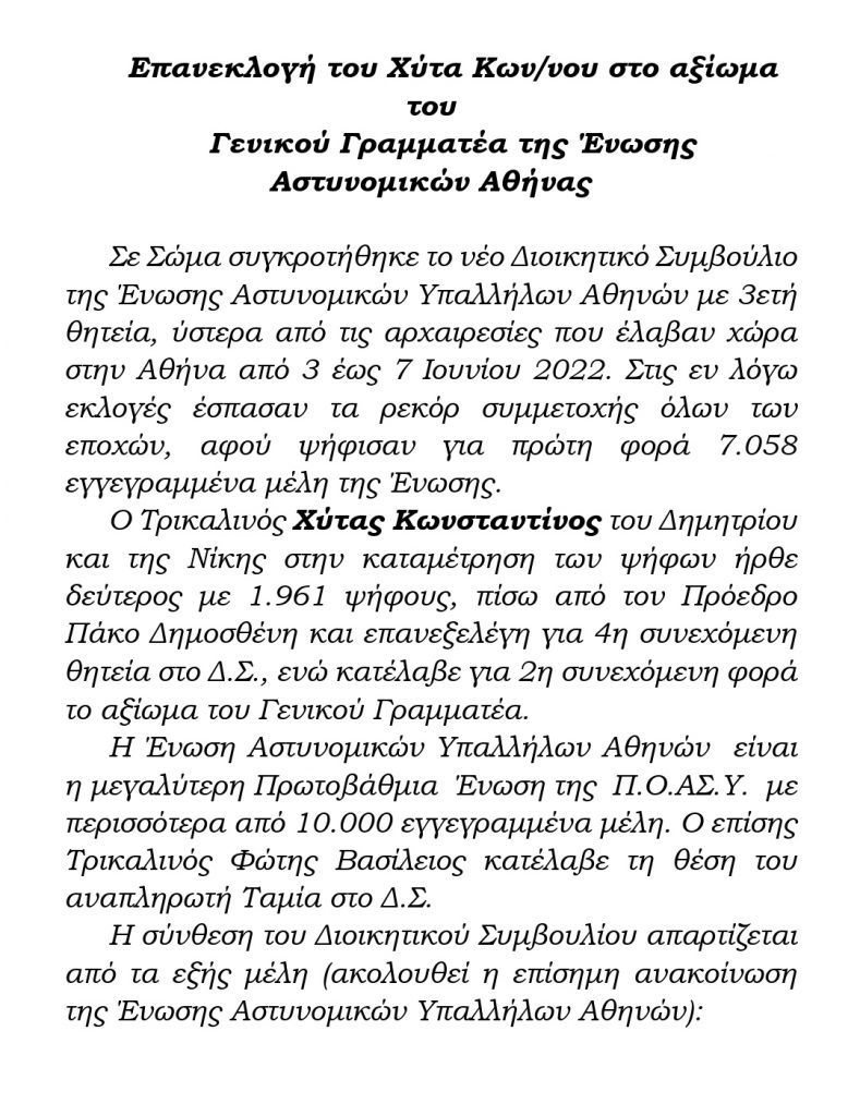 Τρίκαλα Επανεκλογή του Τρικαλινού Κώστα Χυτα ως Γ.Γ στην Αστυνομική Διεύθυνση Αθηνών Αλεξάνδρα Τάμπου08/07/2022 Less than a minute Facebook X Διαβάστε επίσης... Η Κομπανία Βέρδη αναμένεται να «ανάψει» το γλέντι στον Παλαιόπυργο την Κυριακή 21/12 01/12/2025 Με 62 συλλόγους η Ελλάδα χορεύει στις “Γιορτές Παράδοσης 2025-26“ του Μύλου των Ξωτικών 01/12/2025 Αλεξάνδρα Τάμπου08/07/2022 Less than a minute Facebook X Share Facebook X Pinterest WhatsApp Viber