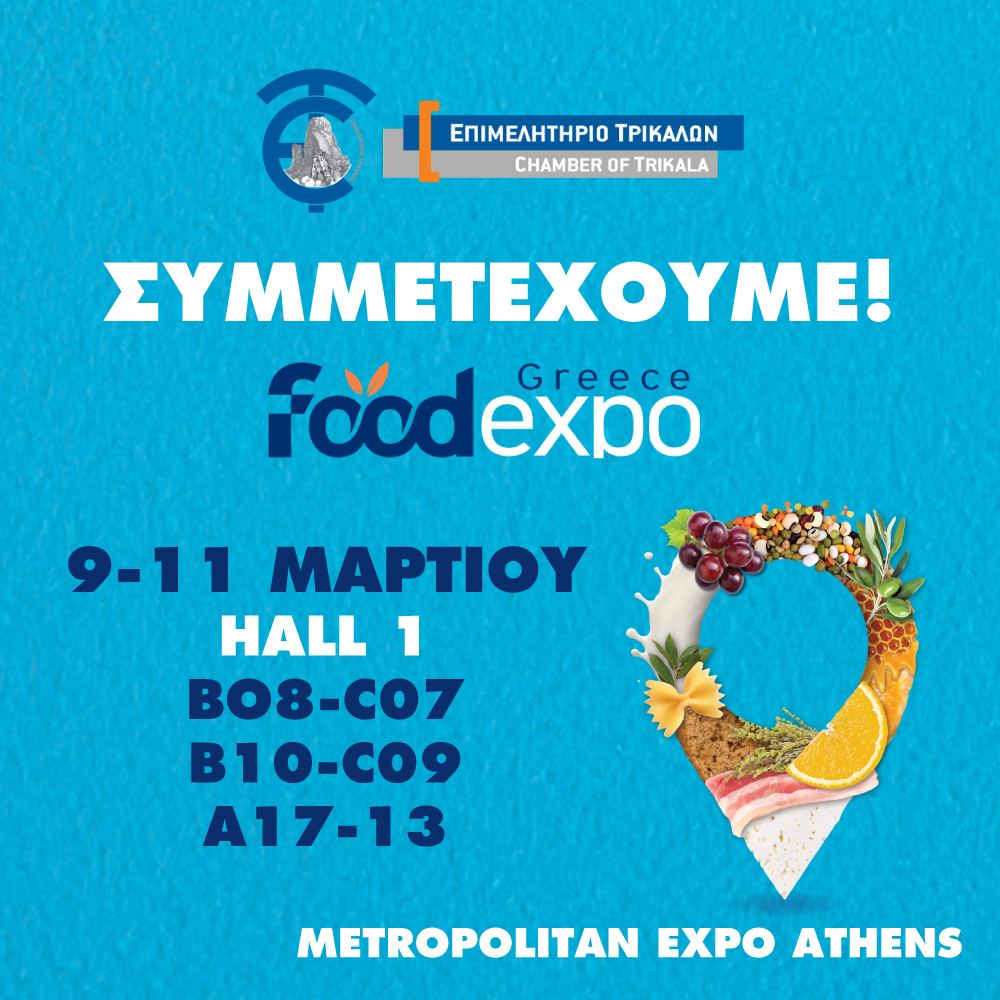 Το Επιμελητήριο Τρικάλων με τη συνεργασία της Περιφέρειας Θεσσαλίας, συμμετέχει στην Foodexpo 2024!
