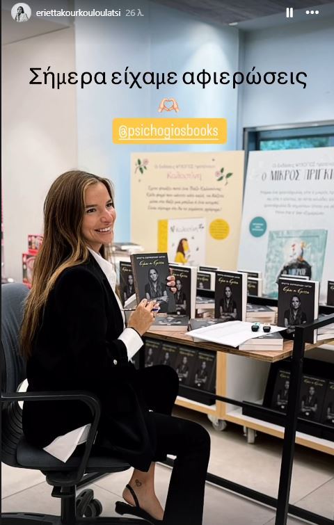 Παρουσίαση του βιβλίου της «Είμαι η Εριέττα» πραγματοποίησε σήμερα η Εριέττα Κούρκουλου-Λάτση.Το βιβλίο θα κυκλοφορήσει σε όλα τα βιβλιοπωλεία στις 24/10/2024, από τις εκδόσεις Ψυχογιός ενώ η προπώληση έχει ήδη ξεκινήσει. Ιδιαίτερα χαρούμενη και περήφανη για το πρώτο συγγραφικό της εγχείρημα, φωτογραφήθηκε και μοίρασε αφιερώσεις, όπως ανέφερε η ίδια στο λογαριασμό της στο instagram.