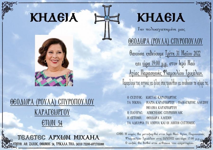 Τρίκαλα Εφυγε η 54χρονη Θεοδώρα Σπυροπούλου Αλεξάνδρα Τάμπου30/05/2022 Less than a minute Facebook X Διαβάστε επίσης... Η Κομπανία Βέρδη αναμένεται να «ανάψει» το γλέντι στον Παλαιόπυργο την Κυριακή 21/12 01/12/2025 Με 62 συλλόγους η Ελλάδα χορεύει στις “Γιορτές Παράδοσης 2025-26“ του Μύλου των Ξωτικών 01/12/2025 Αλεξάνδρα Τάμπου30/05/2022 Less than a minute Facebook X Share Facebook X Pinterest WhatsApp Viber
