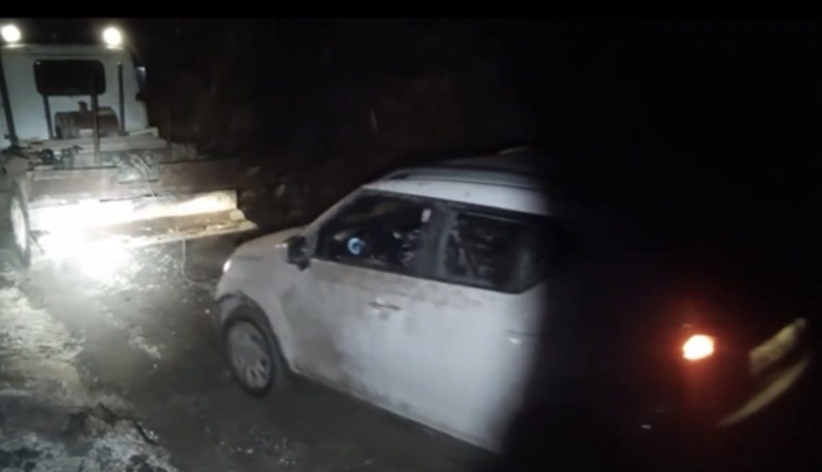 Η Πυροσβεστική ειδοποιήθηκε ωστόσο τον απεγκλωβισμό τους τον ανέλαβαν οι εναπομείναντες στην περιοχή συμπολίτες μας Γιώργος Μπαρμπαρούσης και Γιώργος Νταμάτης, που έφτασαν στο σημείο και μετά από επίπονες και επίμονες προσπάθειες κατάφεραν να ξεκολλήσουν το ΙΧ του νεαρού ζευγαριού.