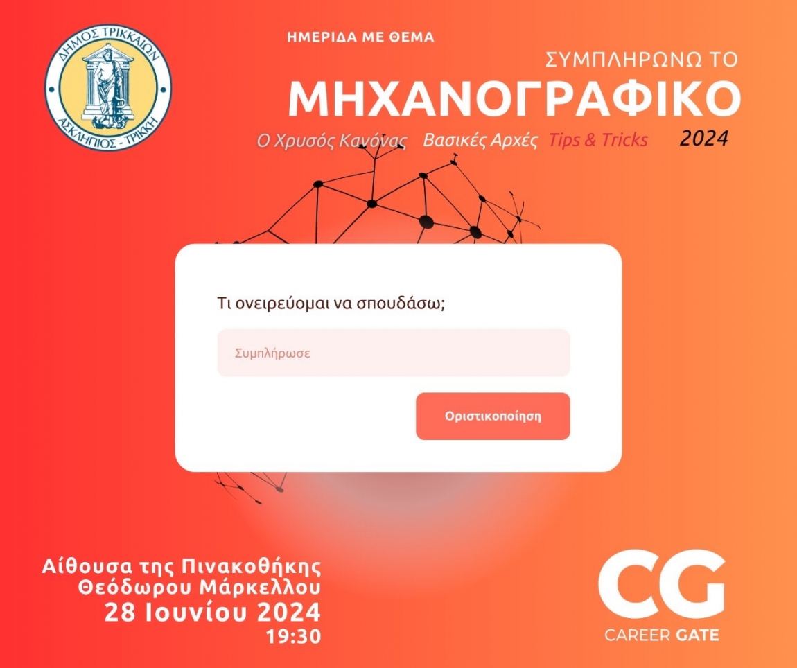 Ημερίδα για τη «Σωστή Συμπλήρωση Μηχανογραφικού» από Δ. Τρικκαίων – Career Gate