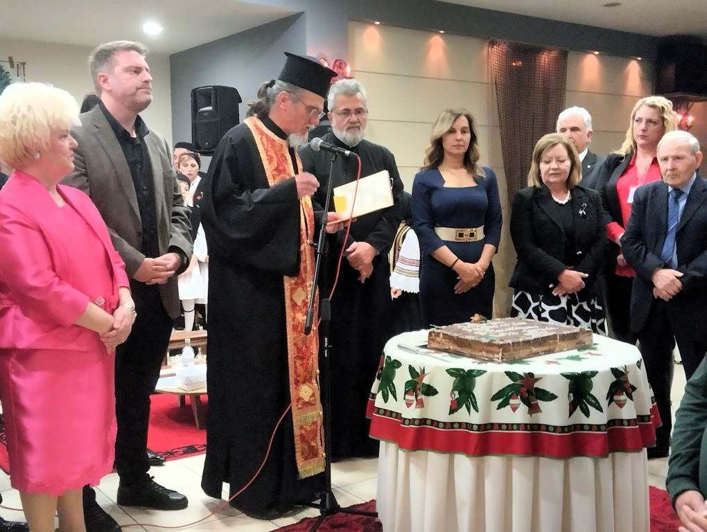 κόβουν την Αγιοβασιλόπιτα ,προσφορά της Χρύσας Κωνσταντέλου